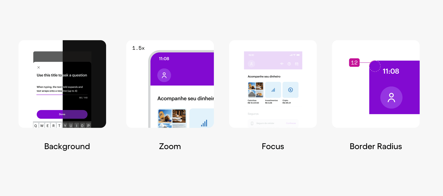 Definitions for how to represent Zoom, Focus, and Border Radius;