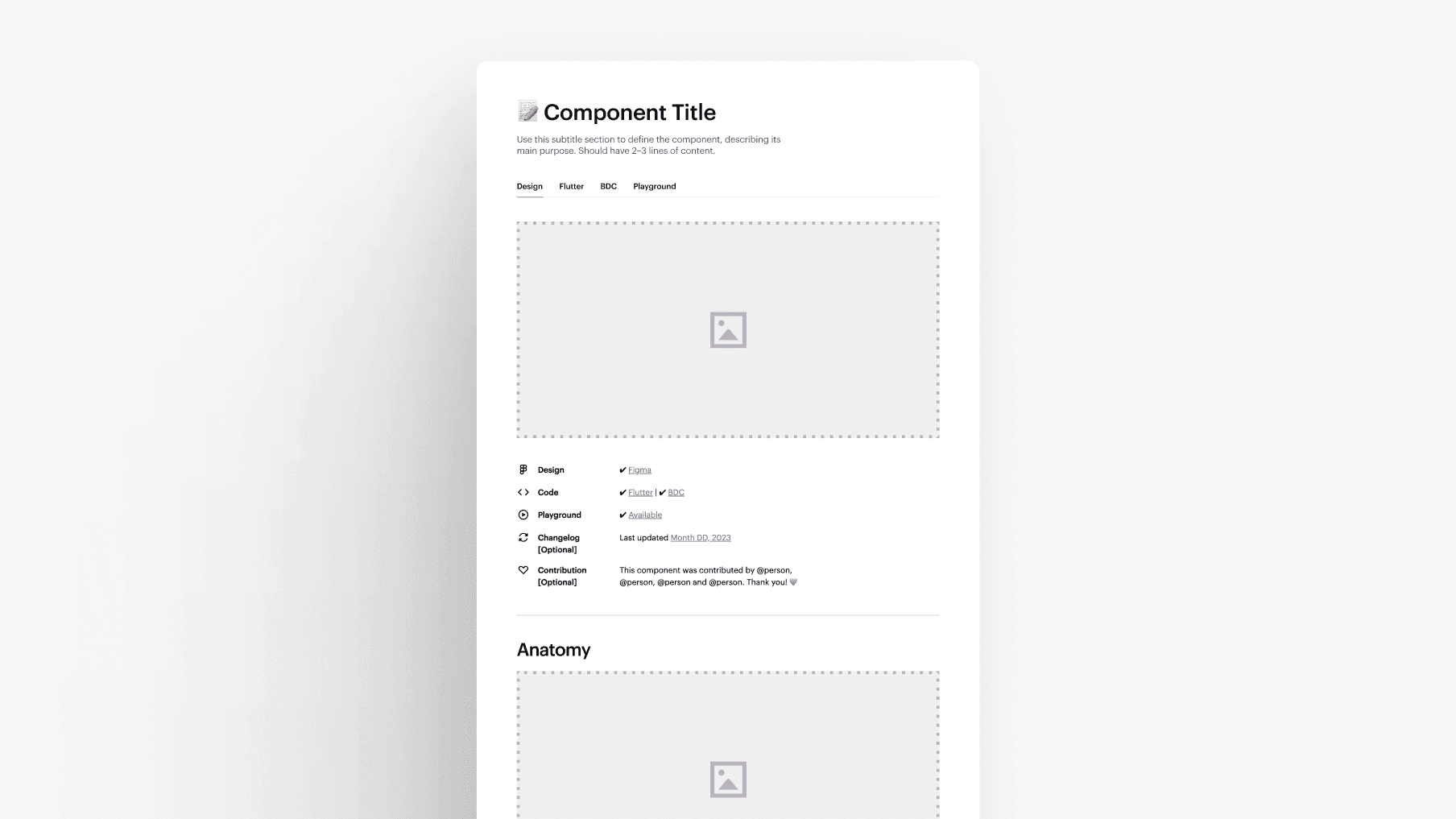 Documentation templates: I created three detailed templates tailored to different documentation types: Foundations, Components, and Templates. Each template includes suggested sections and subsections, as well as descriptions and placeholder assets that can be quickly replaced with actual content.